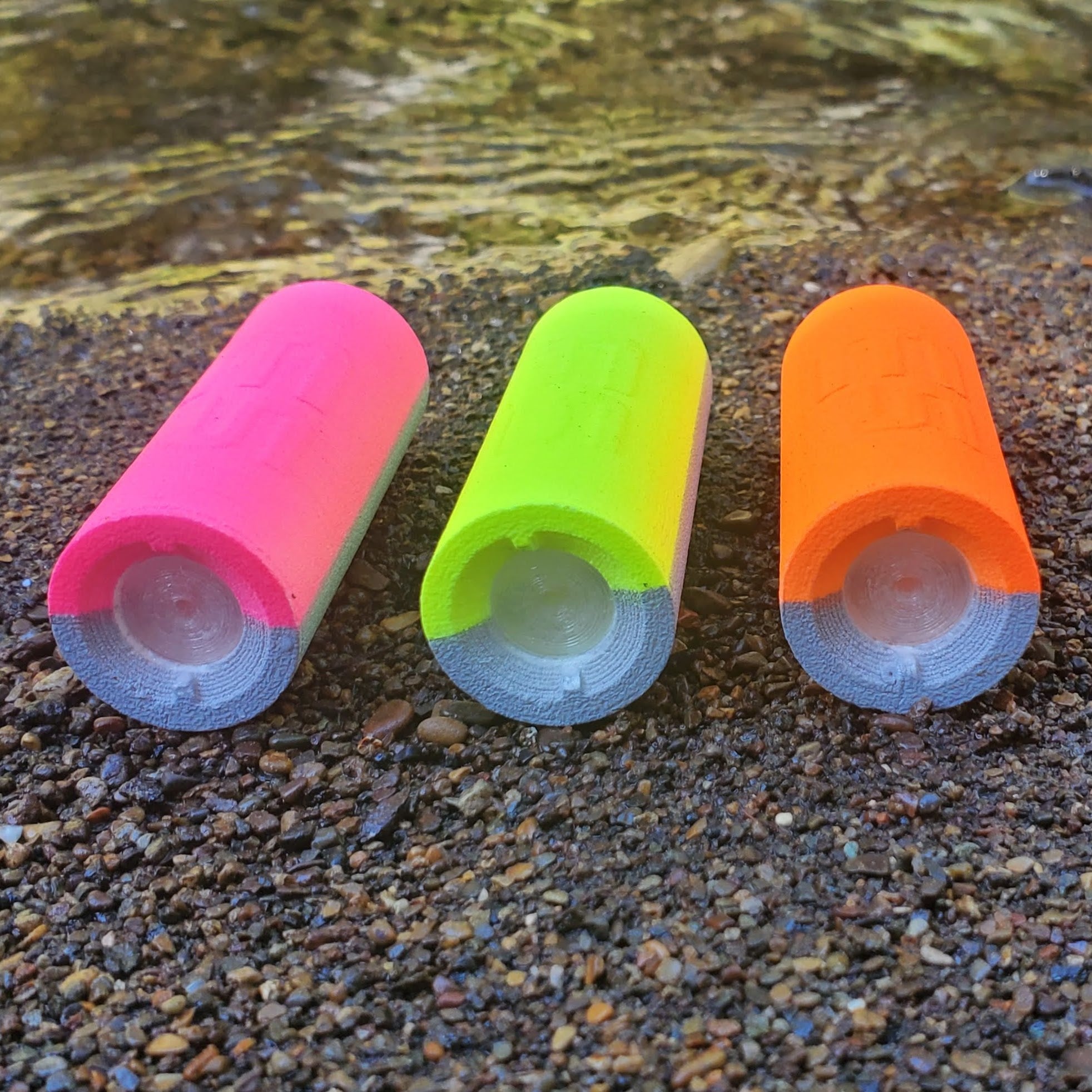 These Stealth Doggers are concave on one end and convex on the other end. This allows the float to be rigged in either direction to match the water speed. It's like having two sizes of traditional style bobber dogging floats in one.