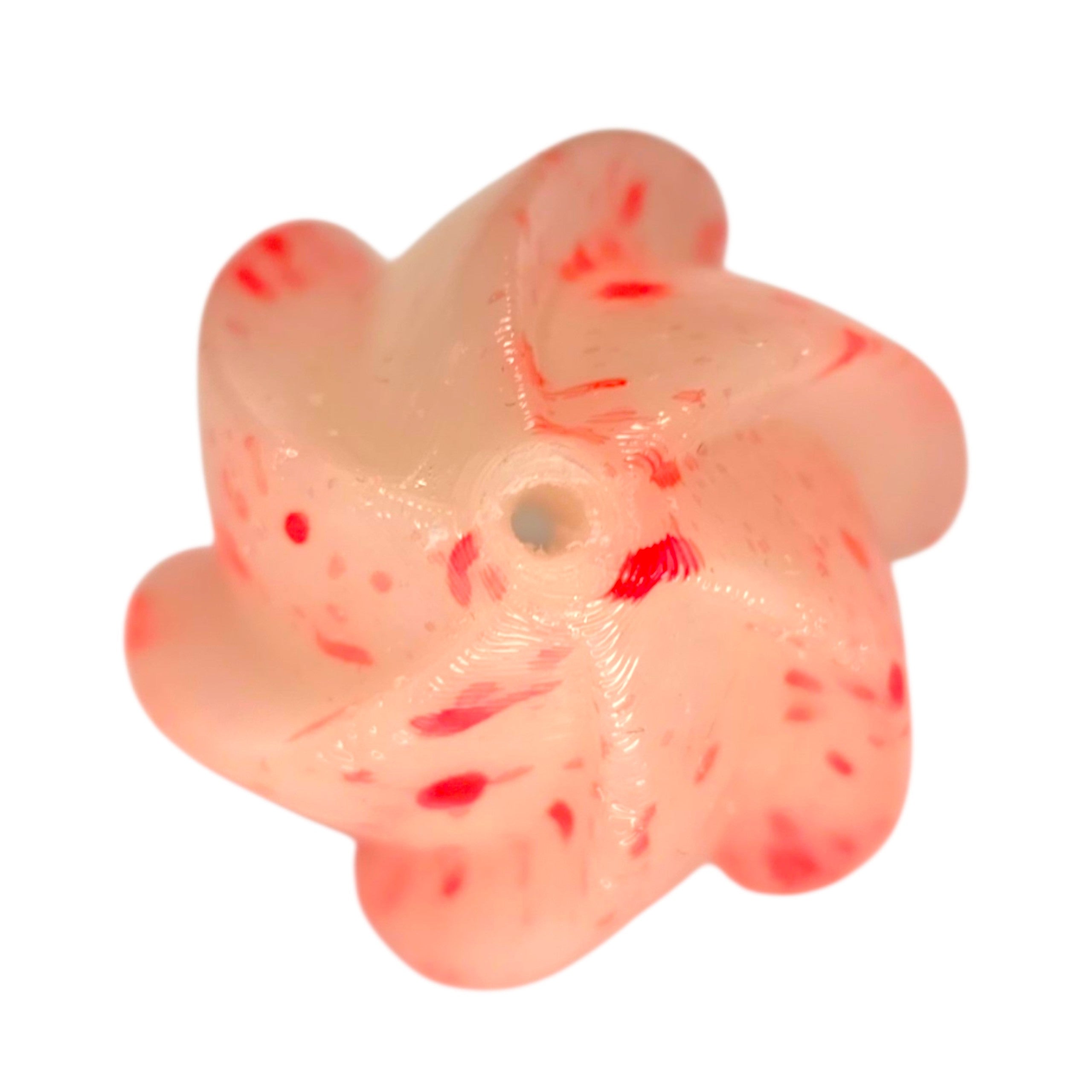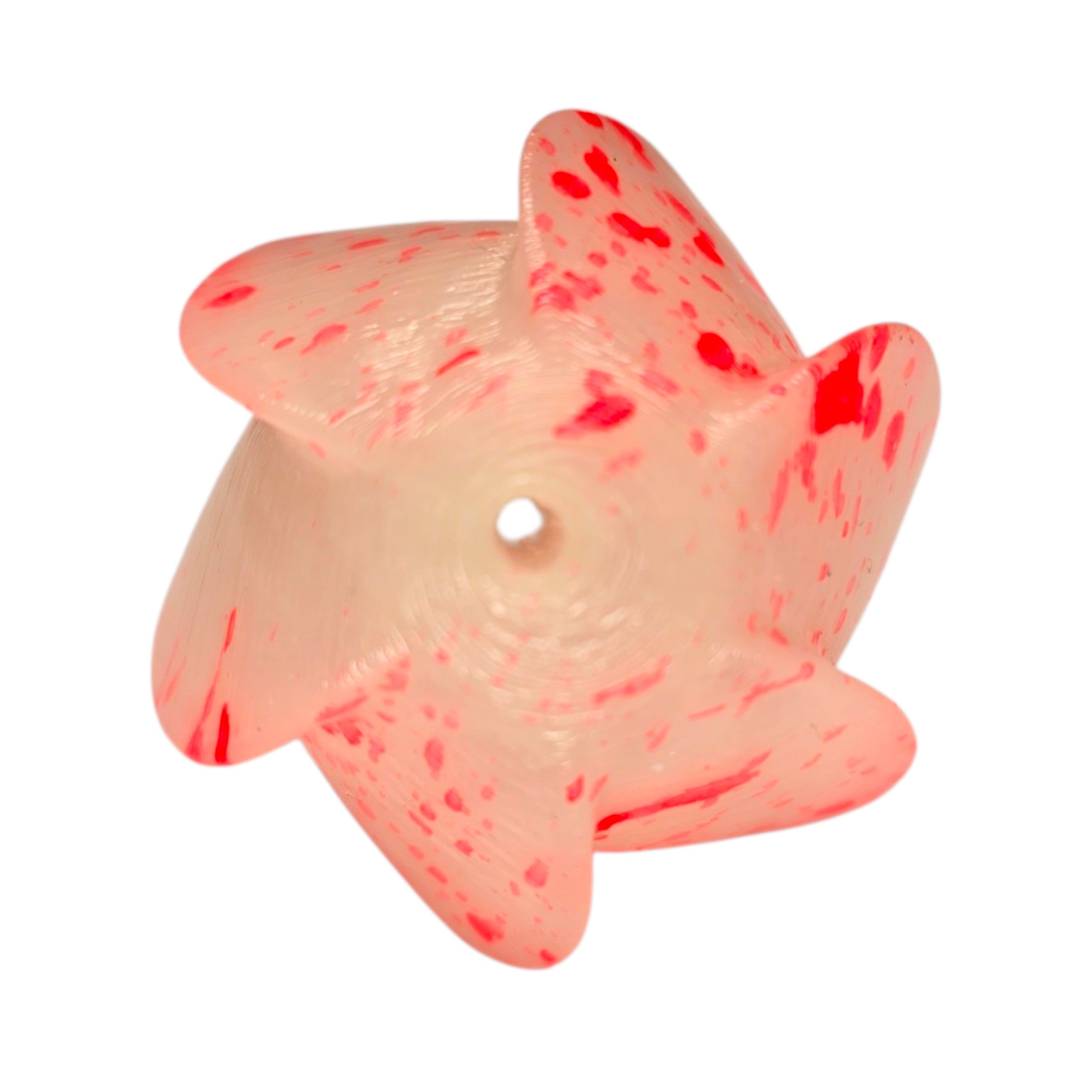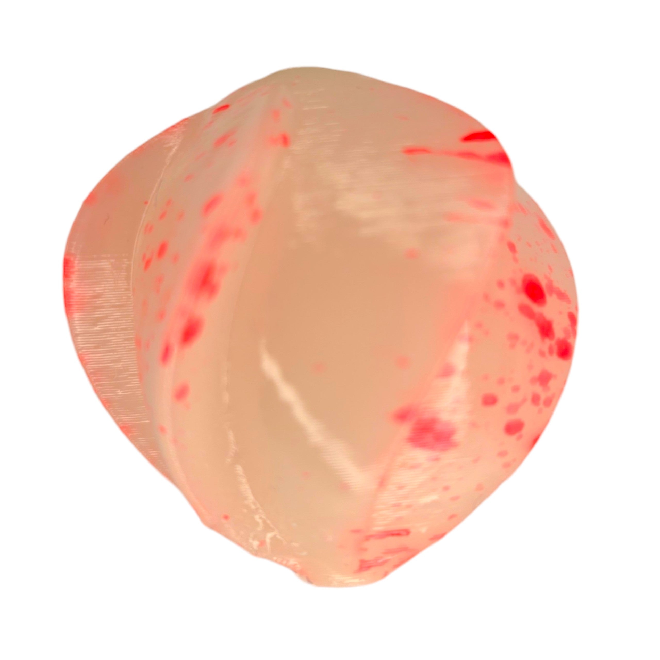 This is easily the most reactive glow-in-the-dark color I've ever seen!  Glows green with red splatter on both sides.