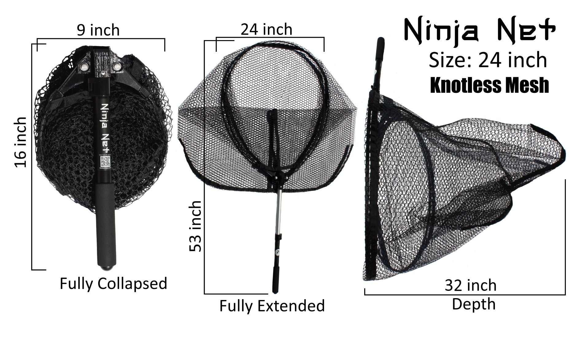 The Ninja Net comes with a fish friendly knotless mesh netting.