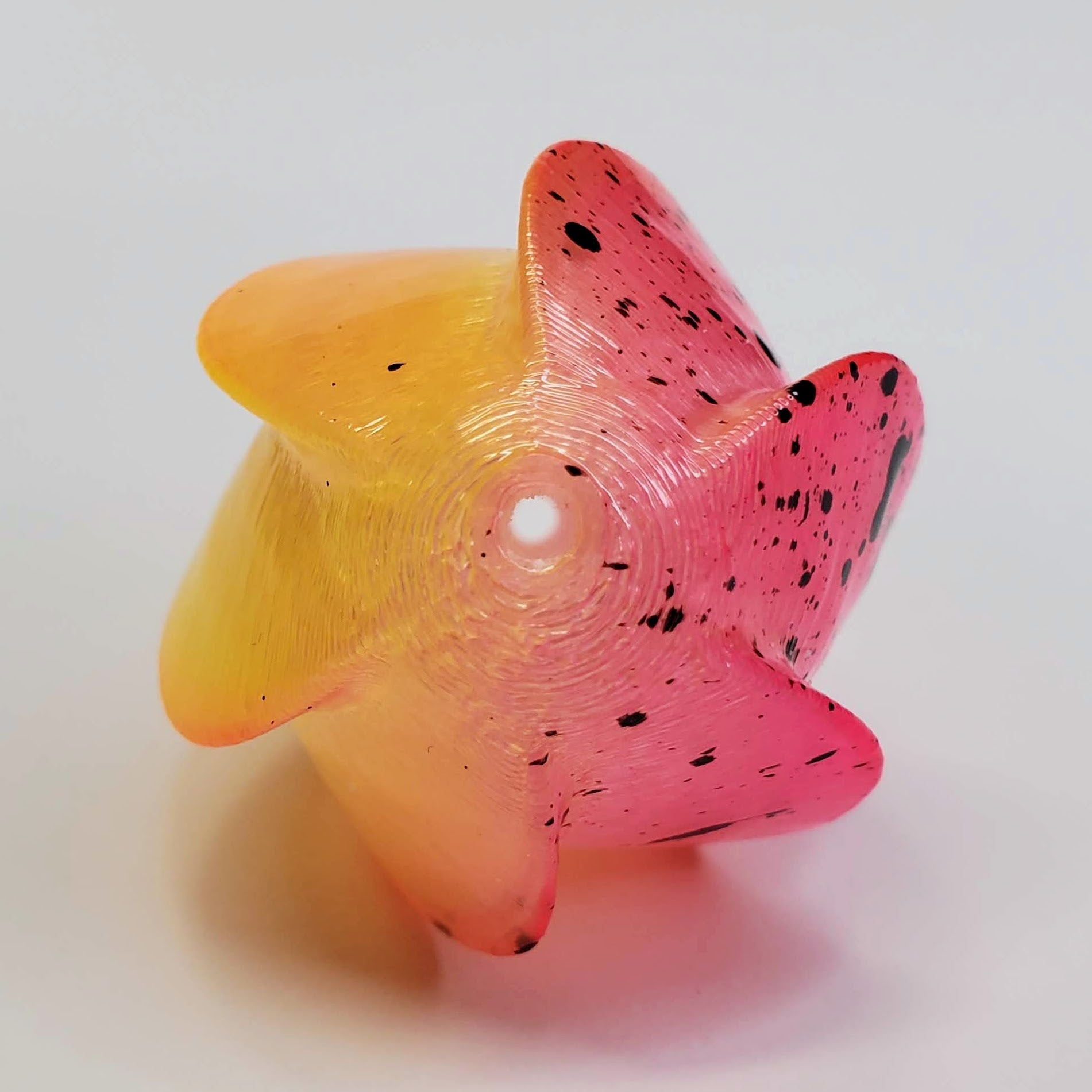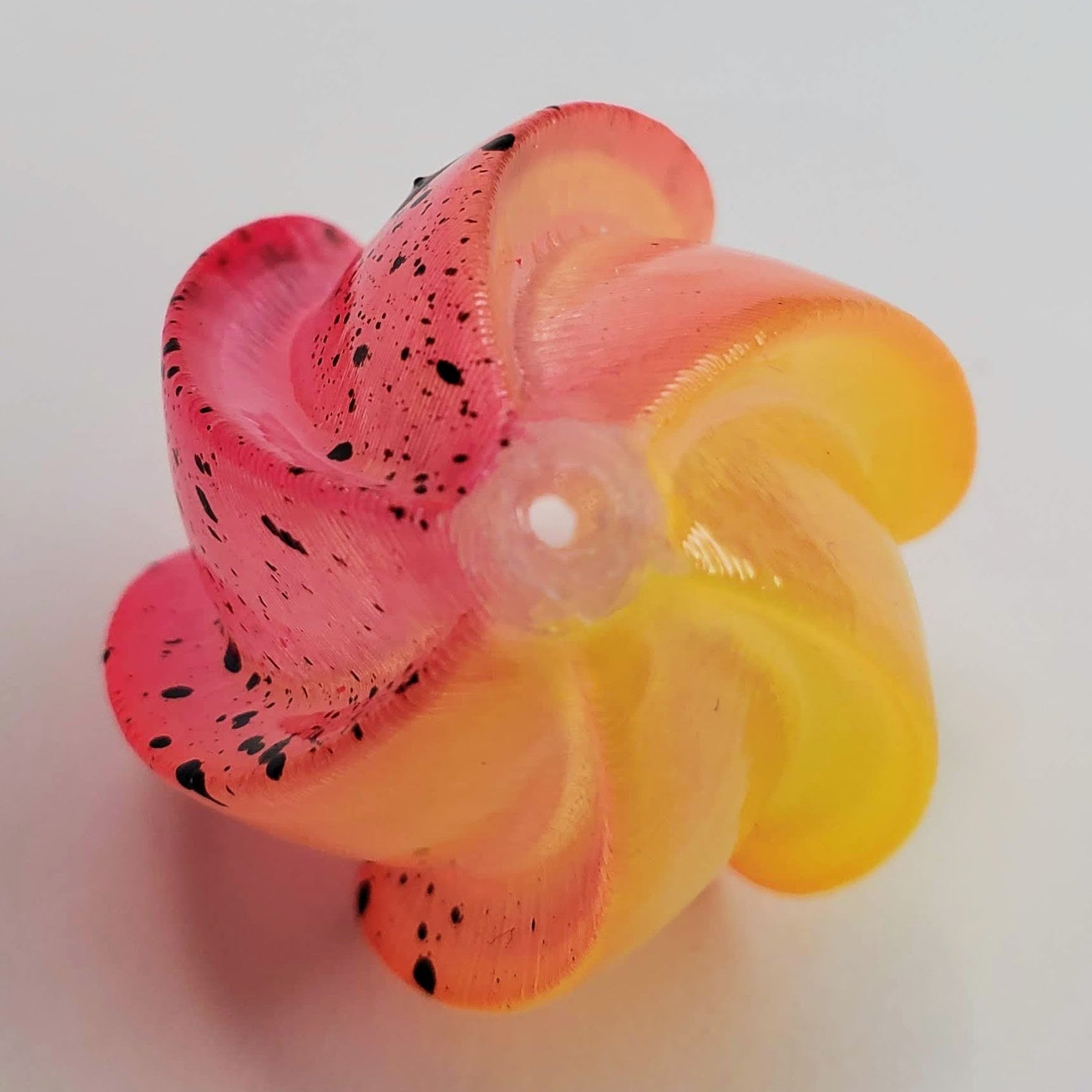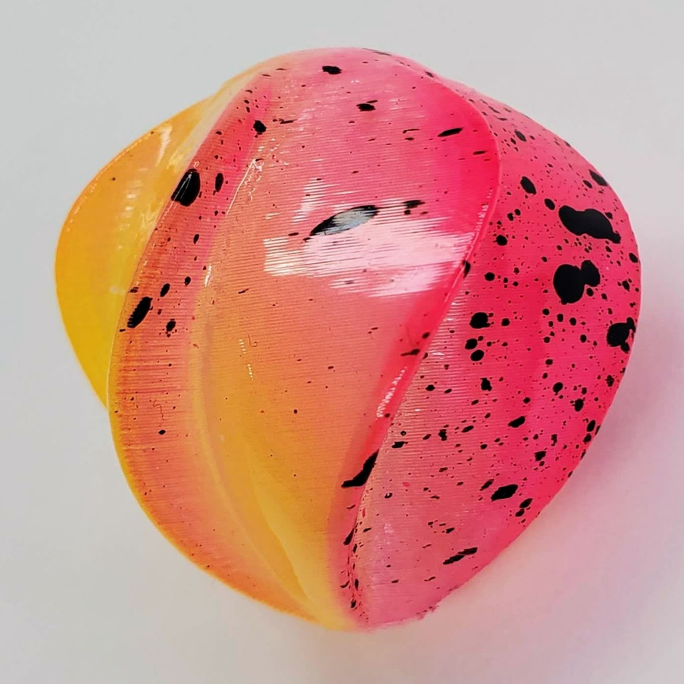 This is a two-tone color with chartreuse and pink. The pink side also has black splatter.