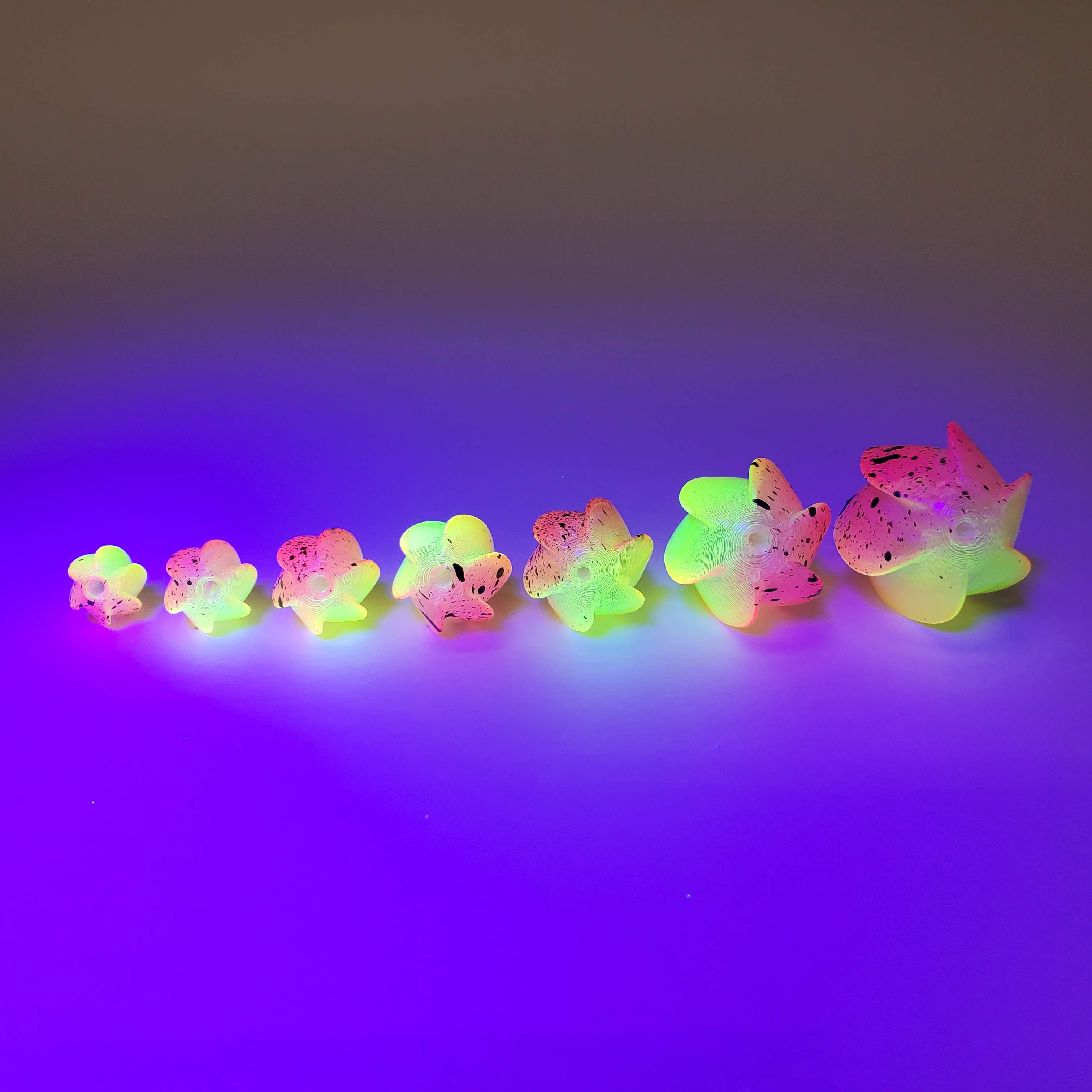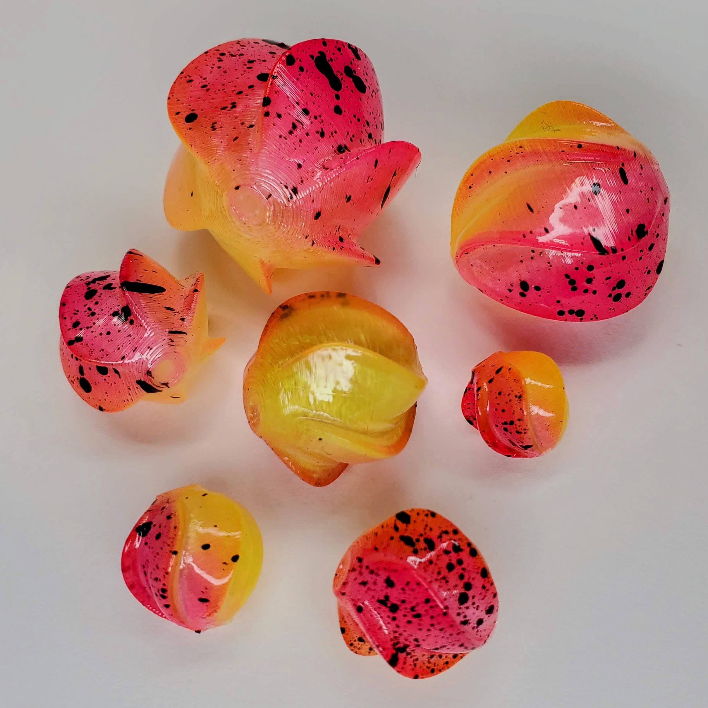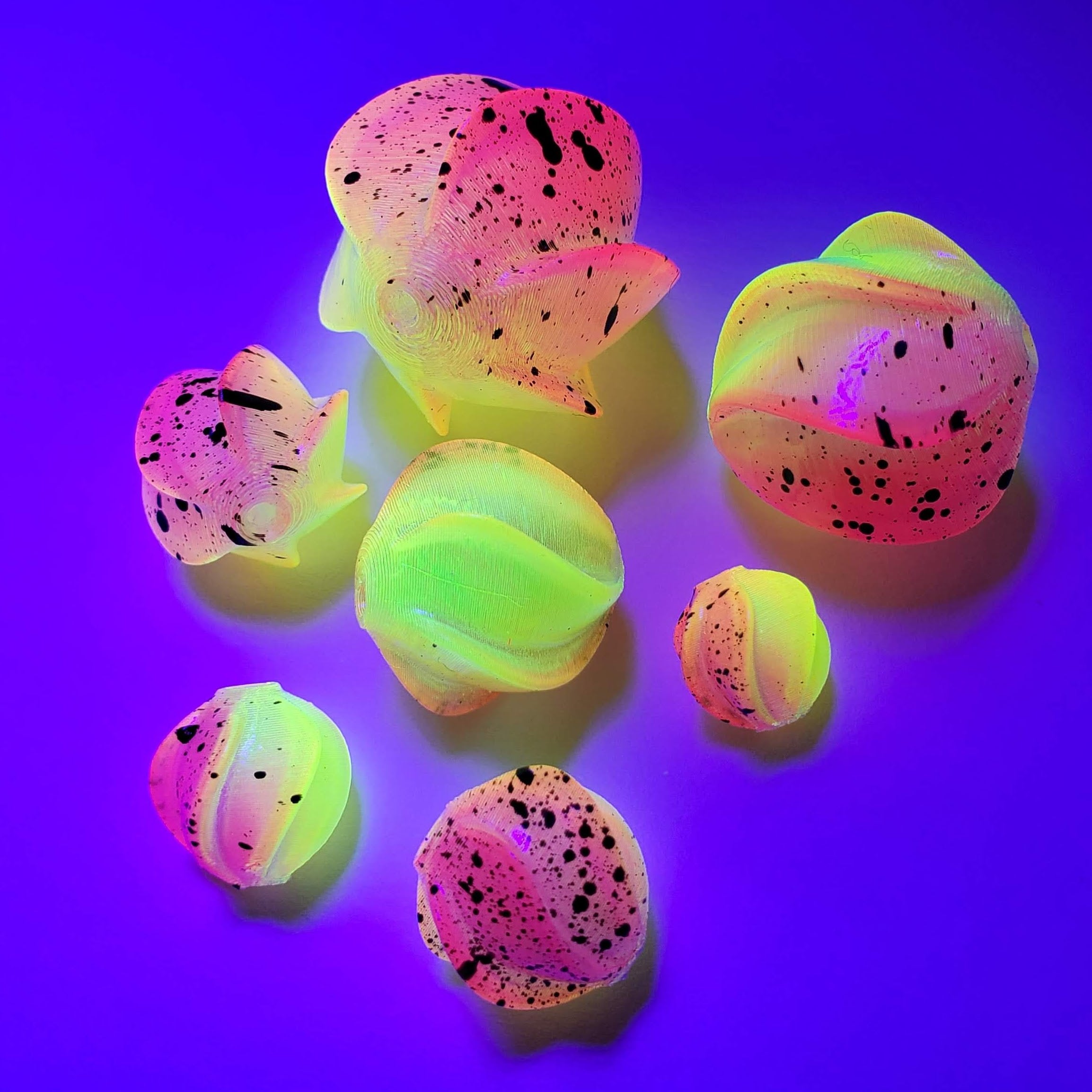 This is a two-tone color with chartreuse and pink. The pink side also has black splatter.